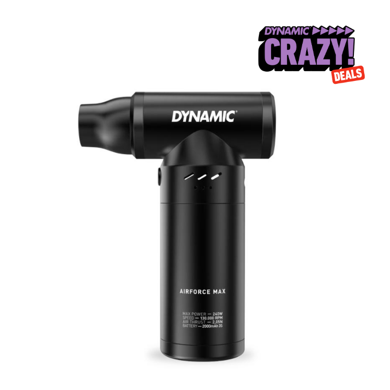 El Airforce Max proporciona un chorro de aire concentrado para eliminar la humedad de las zonas de difícil acceso. Úsalo después del lavado para expulsar el agua de cadenas, desviadores, pinzas de freno, bieletas, rodamientos y otros rincones estrechos.